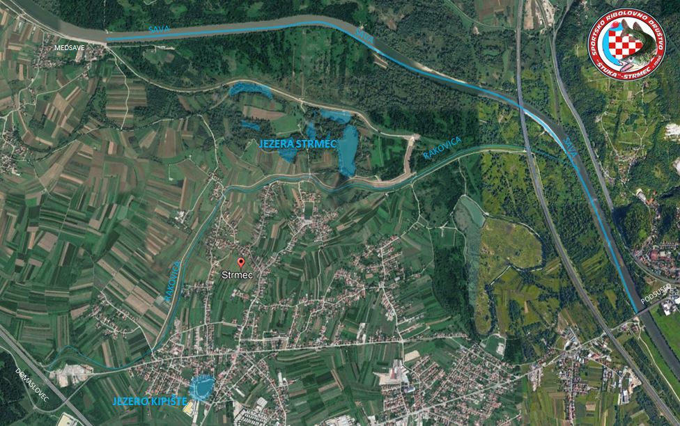 Ribolovna zona Sportsko ribolovnog društva “Štuka” Strmec obuhvaća, rijeku Savu – desna obala od skele u Medsavama do Podsusedskog mosta, potok Rakovica od mjesta Domaslovec do ušća u rijeku Savu, jezero Kipišće na ulasku u mjesto Strmec, te jezera Strmec između Save i mjesta Strmec.